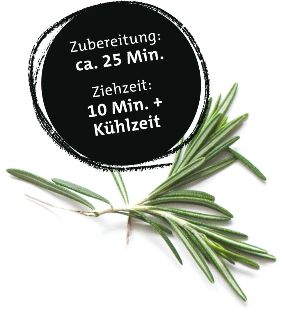 Die Mousse in 4 Gläser füllen. Mit etwas geschlagener Sahne oder festem Milchschaum, einem Rosmarinzweig sowie Nüssen oder Früchten toppen.