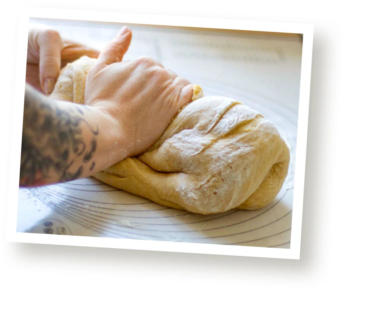 Mit dem Rührgerät (Knethaken) die restlichen Zutaten (Mehl, Salz, Zimt, Zucker, Hefe, Zitronenabrieb, restliche Milch, Butter und Mark der Vanilleschote) rund 7–10 Min. auf mittlerer Stufe zu einem geschmeidigen Teig kneten. Sollte der Teig zu klebrig sein, noch 1–2 EL Mehl hinzufügen.